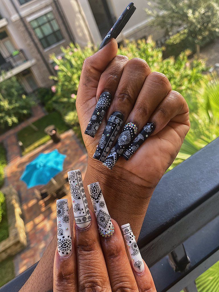 When it comes to today’s trends, fashion, and style, there’s more to it than just wearing the classic bandana pattern as a headband. Have you noticed the strange apparel, such as sultry shoes, bags, bikinis, and even nail sets? Yes, even the nail technicians are putting their clients in the game with this classic bandana pattern as their full set nail design. It’s safe to say that I’m a big fan of adaptability.