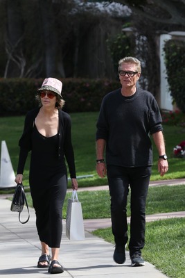 The 71-year-old actor Harry Hamlin was seen looking cool in an all-black outfit beside wife Lisa Rinna, who also dressed up in a black maxi dress with a matching cropped cardigan and black leather flat sandals on Saturday, April 8th, 2023 in Beverly Hills, California.