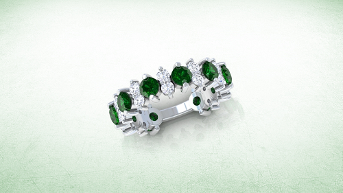 What’s better than a half-eternity emerald band? A three-quarter eternity emerald band! This thoughtfully crafted emerald band has a ritzy design that will surely impress the love of your life. The double row of emeralds and diamonds creates an impressive and dignified look.